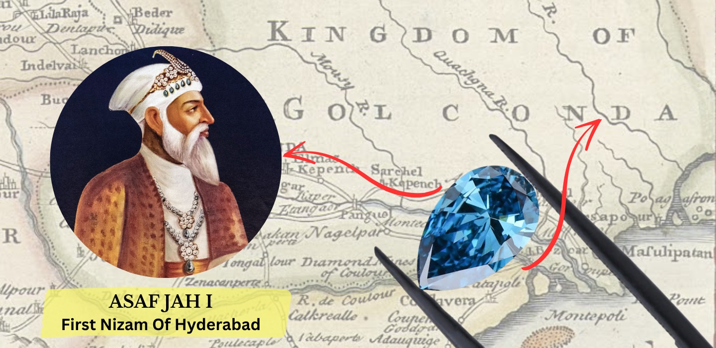 The Seraphim Blue Diamond is said to have entered the Nizam’s treasury, under Asaf Jah 1 the first Nizam of Hyderabad – that would be around 1724. If the narratives are to be believed, this gorgeous Golconda blue diamond, had a fairly short stint in the Nizam’s treasury. The second Nizam is believed to have handed the Seraphim Blue Diamond to the French – in return for military support.